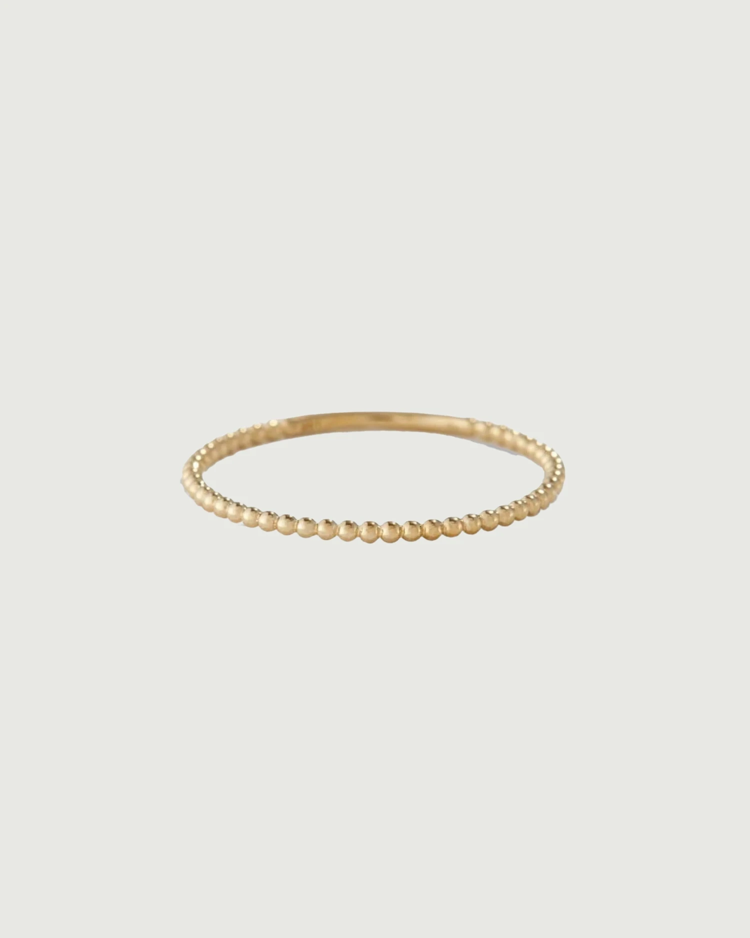 Cast from fine, strong gold, our Bead Ring is a fine dainty ring that looks great on its own or stacked with other rings. It is handcrafted in 14k gold making it durable to wear through any activity.Â